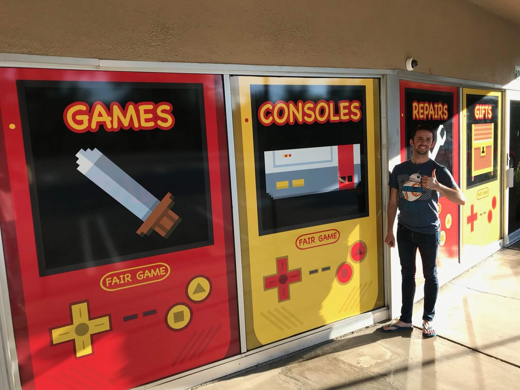 Out in Fair Oaks, California, near where I grew up, is a wonderful retro video game store called Fair Game Retro. It’s a wonderland for every geek out there, with products ranging all of the way back to the Atari 2600. In fact, the majority of my collection comes from this very place. The store had recently went through an expansion, and I was fortunate enough to work with this amazing small business in order to design eye-catching window decals that can be easily seen from the road.