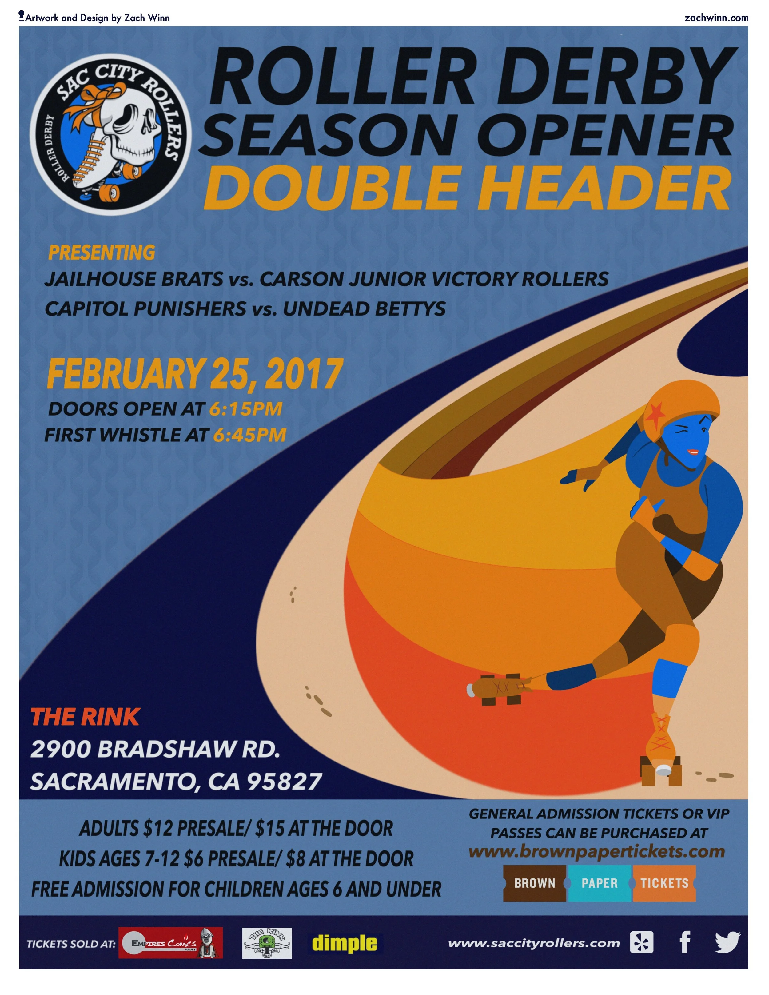 I knew nothing about Roller Derby before I started working with the Sac City Rollers. I worked with the organization from 2016-2017 by designing marketing materiel for their events. You can see examples of many of the flyers and posters I designed for them below. Not only did I learn so much about this amazing sport, but I had a blast working with them. If you’ve never been to a Roller Derby event in person, I strongly encourage you to do so.